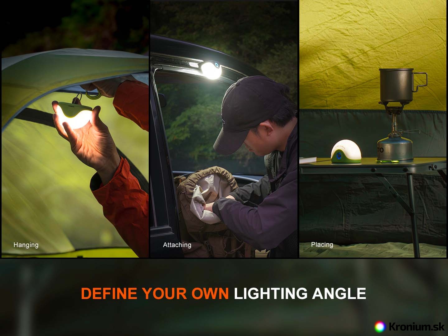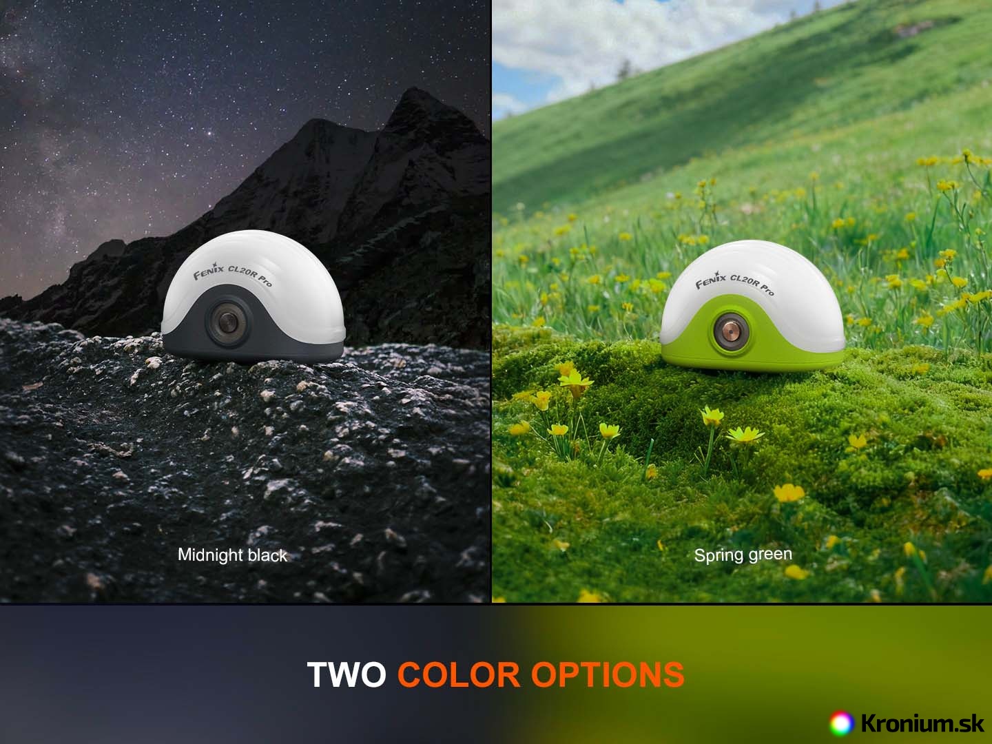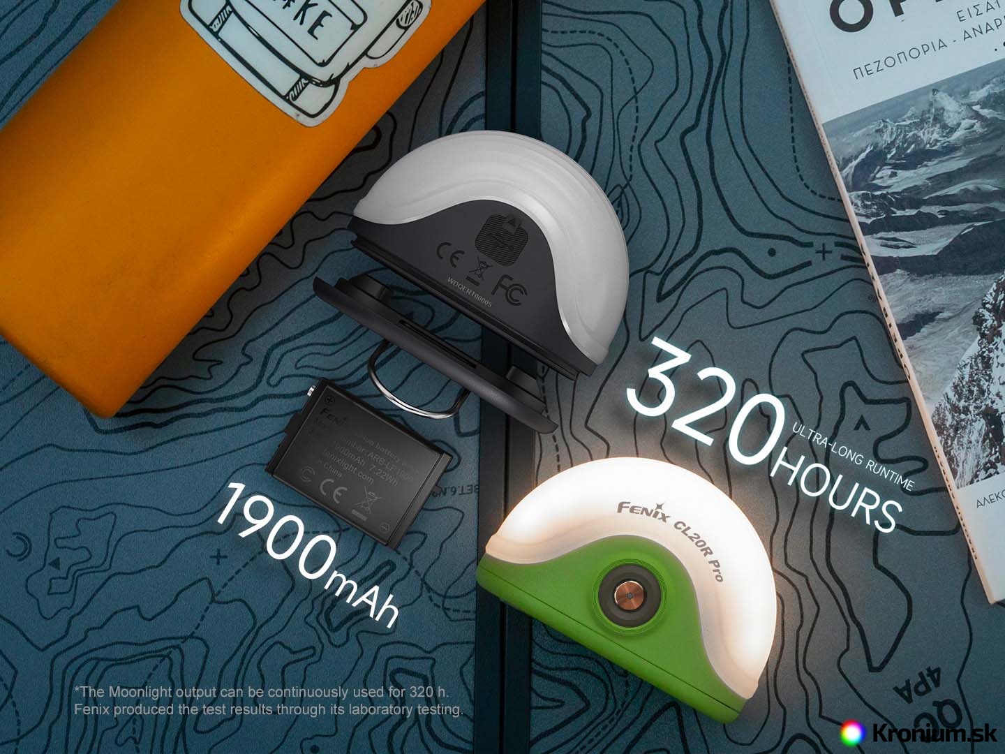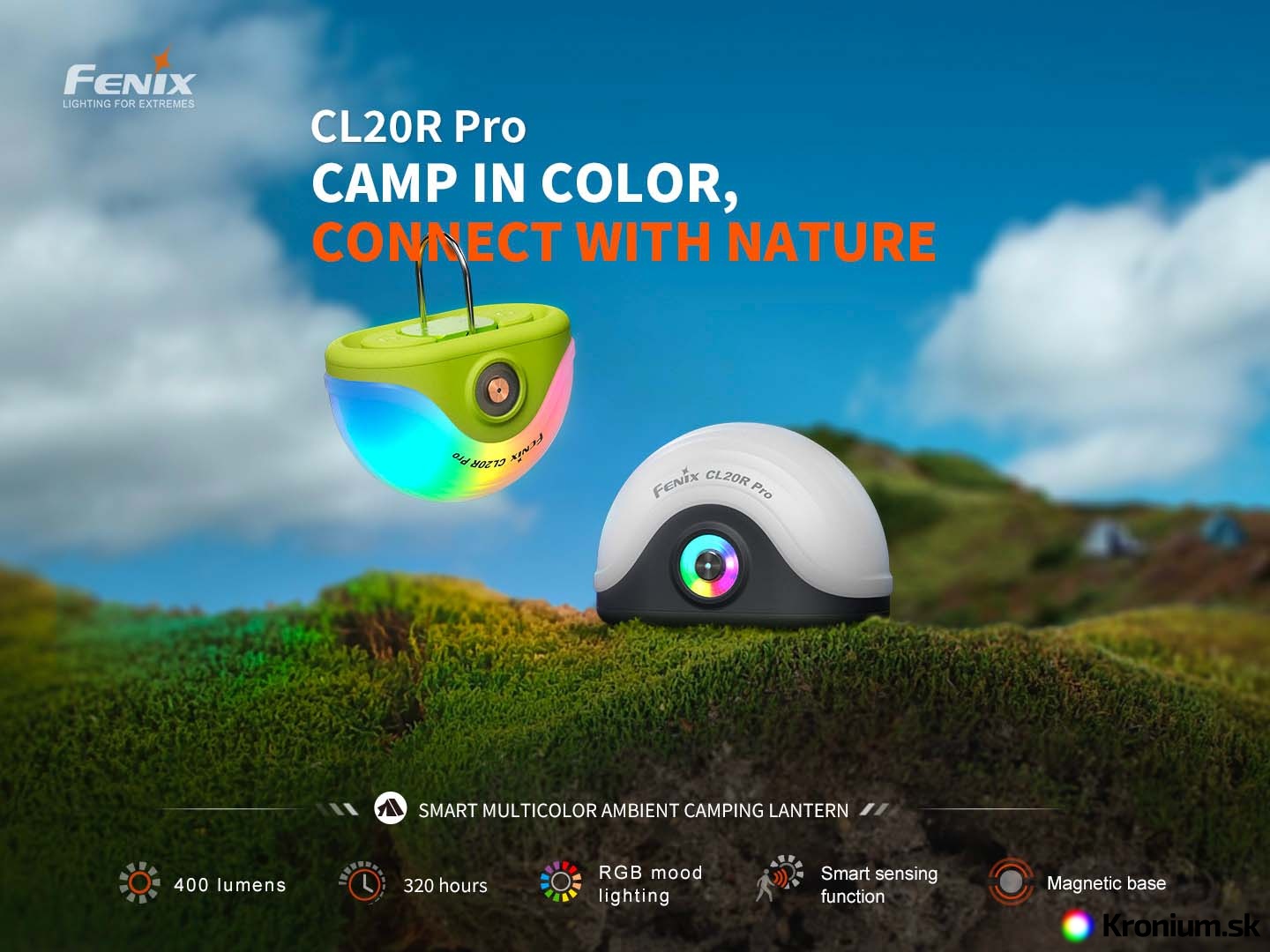 Hľadáte spoľahlivé a všestranné svetlo na kempovanie, stanovanie, rybárčenie alebo večery na terase? Práve ste ho našli. Fenix CL20R Pro je kompaktná a výkonná nabíjacia kempingová lucerna, ktorú môžete použiť na osvetlenie miestnosti, stanu či pracovného stola. Dvadsaťsedem vysoko jasných diód ukrytých pod pologuľovitým difuzérom poskytuje svetelný tok až 400 lúmenov (ANSI) s príjemným neutrálnym odtieňom bieleho svetla (3700 - 4200 K). Výhodou tohto odtieňa je prirodzenejšie a kontrastnejšie podanie farieb, ktoré neunavuje oči. Pre vytvorenie atmosféry je lucerna vybavená aj dvadsiatimi štyrmi RGB diódami pre farebné svietenie. Napájanie zabezpečuje vymeniteľný Li-ion akumulátor Fenix ARB-LP1900 s kapacitou 1900 mAh, ktorý sa pohodlne dobíja cez moderný USB-C konektor. V núdzi ho možno nahradiť tromi bežnými AAA batériami. Vďaka odolnej konštrukcii s krytím IP65 sa nezľakne ani dažďa. Spodná strana je vybavená výklopným závesným okom a silným neodýmovým magnetom, takže ju ľahko pripevníte na stanovú konštrukciu, kapotu auta alebo akýkoľvek železný povrch. S váhou iba 122 gramov je ideálnym outdoorovým svetlom na cesty.