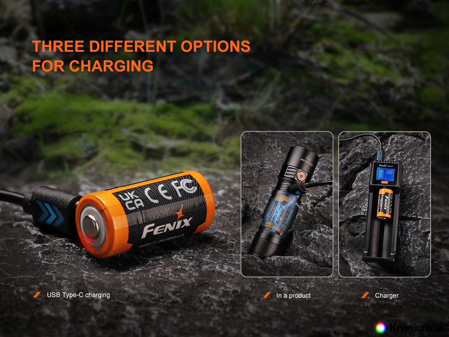 - Vo svietidle alebo čelovke: Akumulátor je možné nabíjať aj vo vnútri kompatibilných nabíjacích svietidiel.