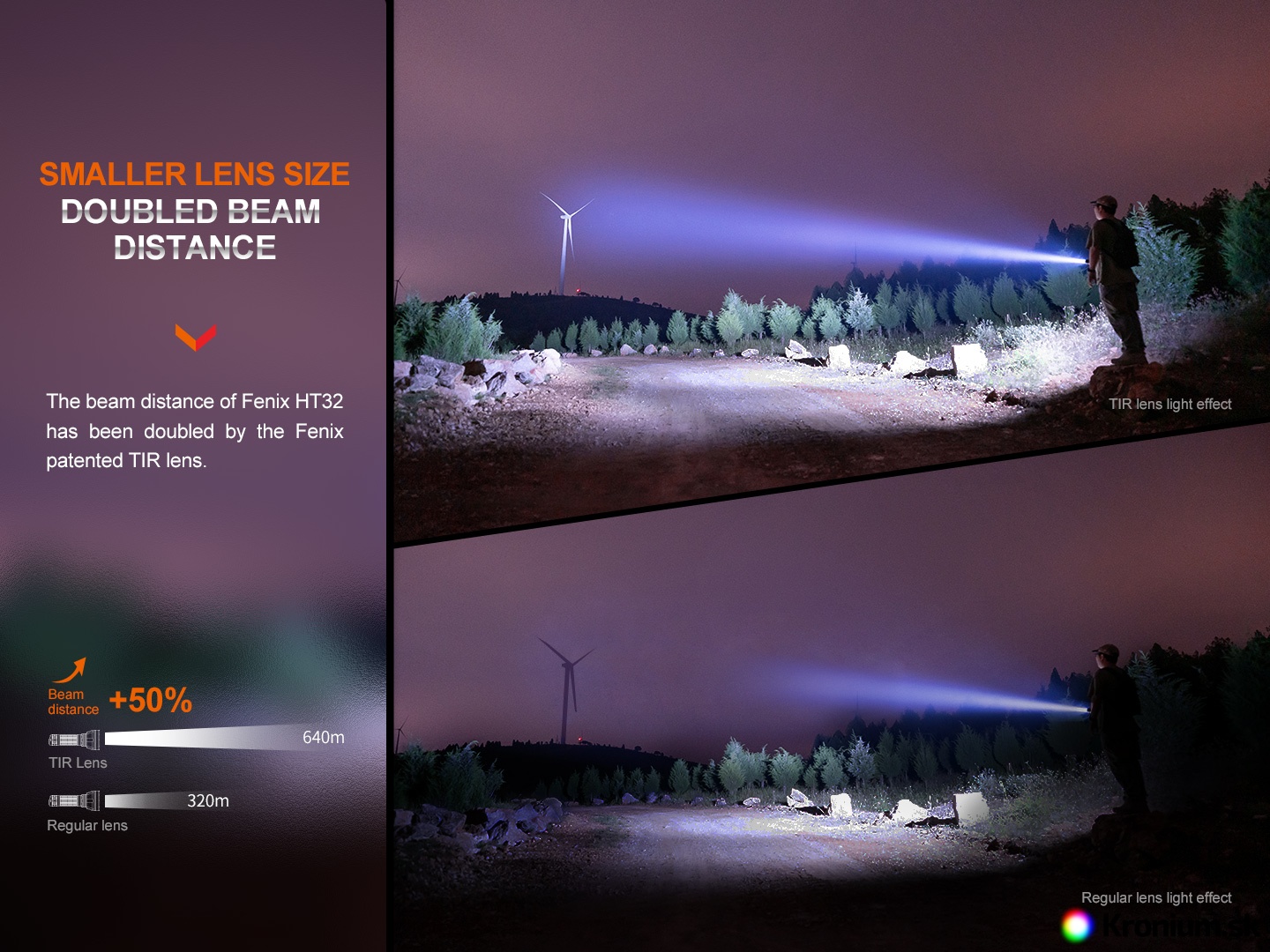 Lovecké svietidlo Fenix HT32 s bielou, červenou a zelenou LED ponúka špičkový svetelný tok až 2500 lúmenov v bielom svetle a dosvit až 640 metrov. Maximálny výkon zeleného svetla je 1400 lúmenov s dosvitom 210 metrov a maximálny výkon červeného svetla je 400 lúmenov s dosvitom 120 metrov. Svetelné diódy od amerického výrobcu Luminus sú osadené v TIR optike, ktorá vytvára dobre zaostrený svetelný kužeľ. Na napájanie slúži jeden Li-ion akumulátor typu 21700 s kapacitou 5000 mAh a zabudovaným nabíjacím USB-C konektorom (akumulátor je súčasťou balenia).