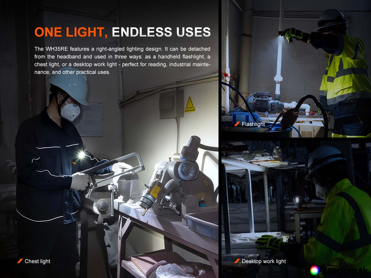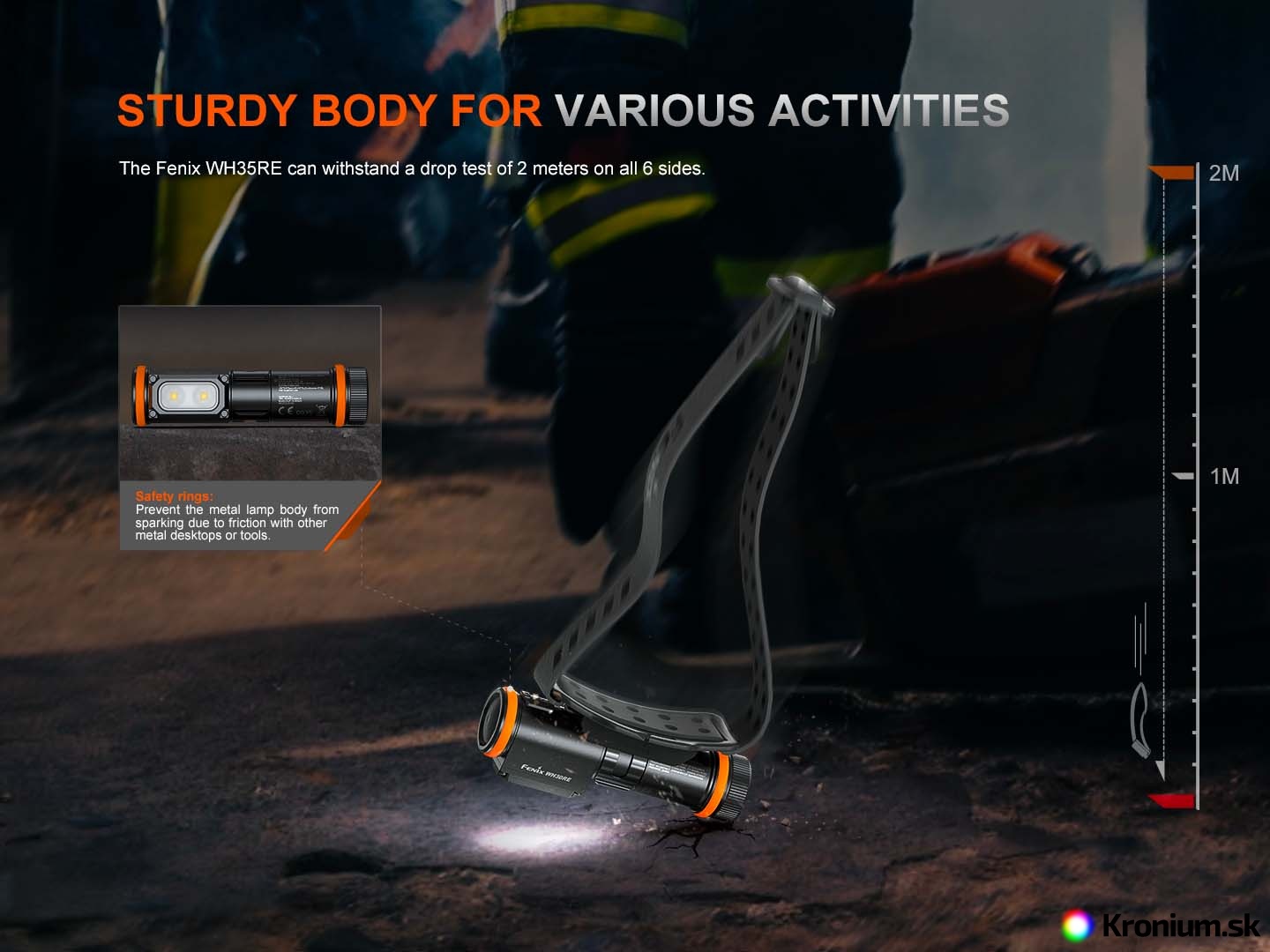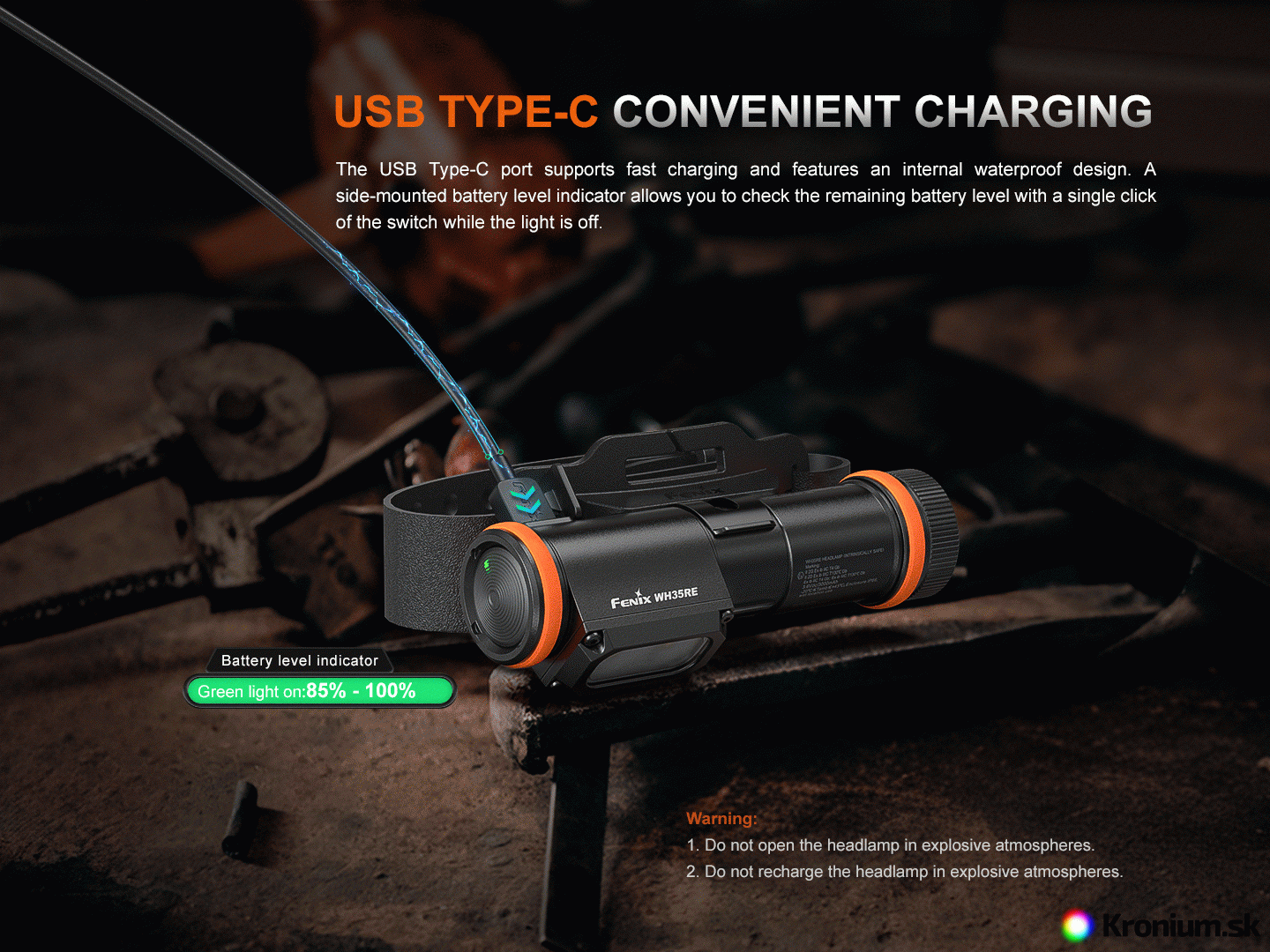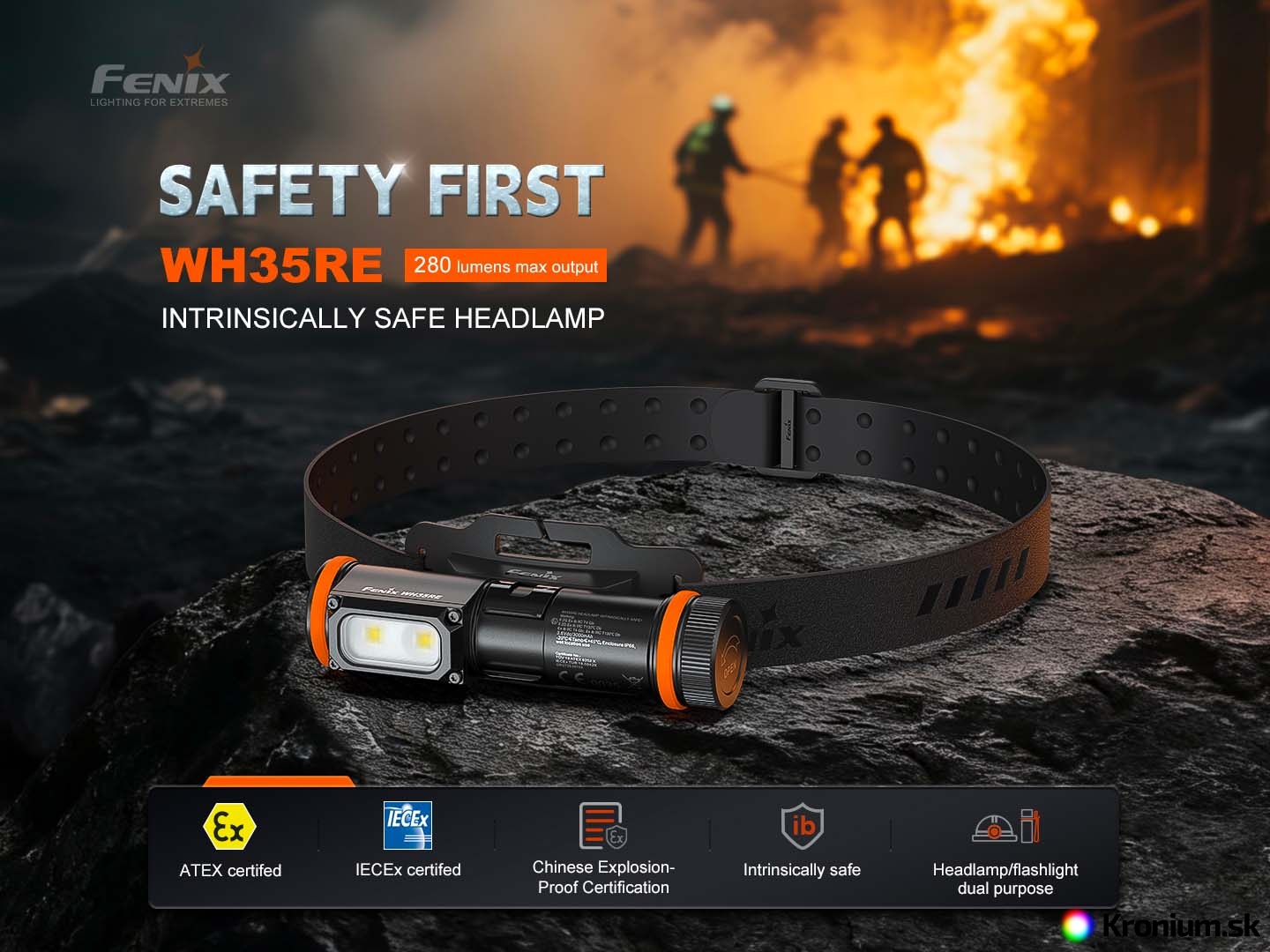 Fenix WH35RE je bezpečná pracovná čelovka do výbušného prostredia, určená pre rôzne oblasti s rizikom výbuchu, okrem podzemných baní. Je vybavená certifikáciou ATEX/IECex. Ponúka maximálny výkon 280 lúmenov a napája ju jeden špeciálne upravený Li-ion akumulátor ARB-L21-3000Ex s kapacitou 3000 mAh (je súčasťou balenia), ktorý sa dobíja priamo v svietidle cez moderný USB-C konektor. Praktickosť čelovky zvyšuje možnosť vybrať svetlo z hlavového držiaka a používať ju aj ako vreckovú či pracovnú svietidlo. Navyše je čelovka vybavená oceľovou odnímateľnou sponou, takže ju ľahko uchytíte na vrecko či popruh. Jej veľký spínač umožňuje jednoduché a presné ovládanie – dokonca aj v rukaviciach.