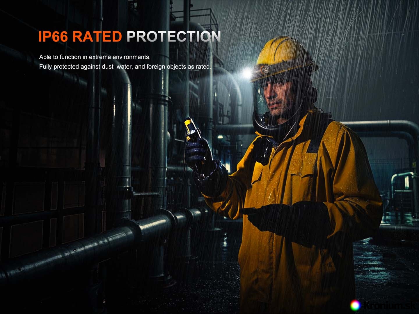 - Vodotesná a prachotesná podľa štandardu IP66 (ostrekovanie silnými prúdmi vody zo všetkých smerov).