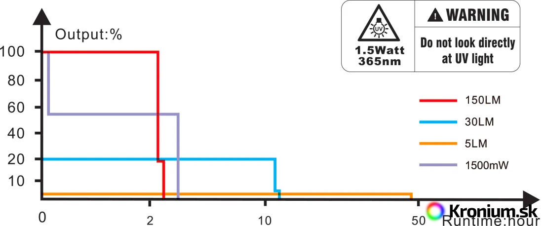 - UV svetlo: 1500 mW (3,25 hodiny).