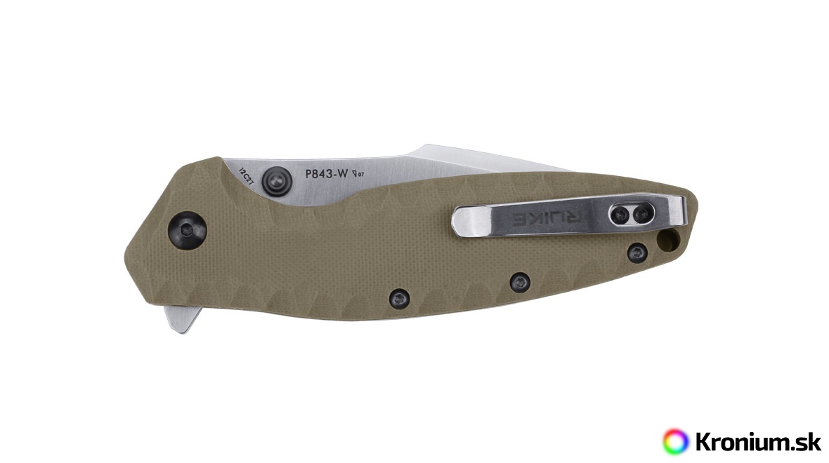 Kompaktný zatvárací nôž Ruike P843 je vhodný pre pravákov aj ľavákov a možno ho otvoriť jednou rukou. Je vybavený páčkou flipper aj palcovou páčkou na oboch stranách čepele, jeho otvorenie je teda naozaj jednoduché. Proti nechcenému zatvoreniu je nôž vybavený poistkou liner lock, ktorú možno pre väčšiu bezpečnosť uzamknúť. Črienka je vyrobená z materiálu G10 s protišmykovou úpravou v čiernej (P843-B) alebo pieskovej farbe (P843-W). Nôž je doplnený sponou na uchytenie vo vrecku a je ideálny na každodenné nosenie (kategória EDC).