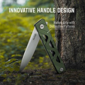 Kompaktný zatvárací nôž Ruike P878 je opatrený črienkami z hliníkovej zliatiny 6063. Čepeľ je vybavená flipperom pre rýchle a pohodlné otvorenie. Proti nechcenému zatvoreniu je nôž opatrený poistkou liner lock. Nôž je vybavený sponou v pozícii Deep Carry pre čo najviac skryté uchytenie vo vrecku a je ideálny na každodenné nosenie (kategória EDC).