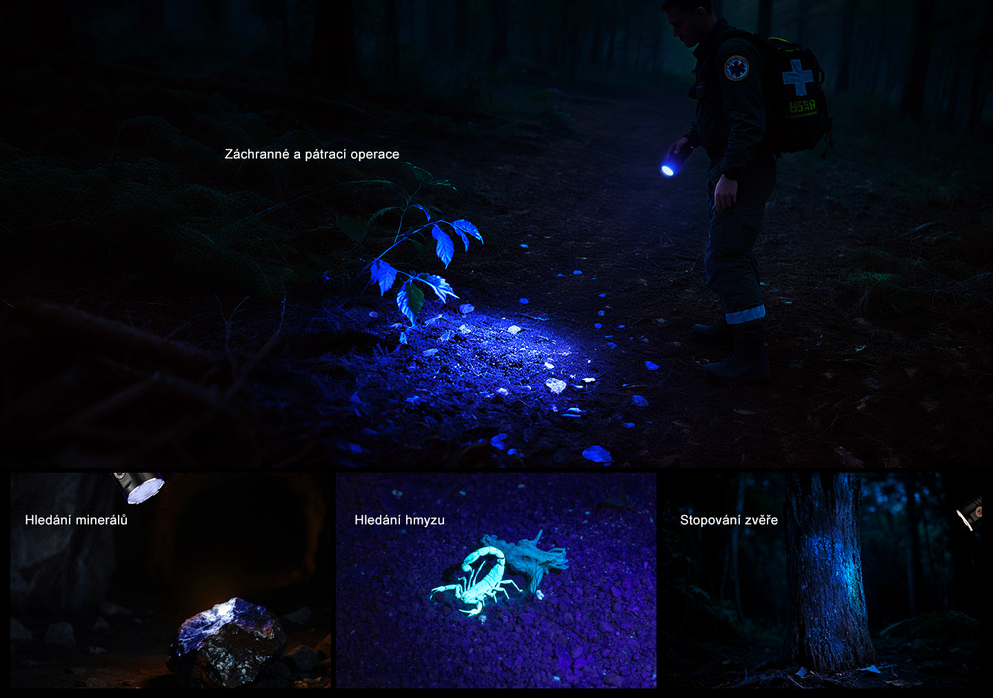 Ultrafialové svetlo, konkrétne vlnová dĺžka 365 nm, ktorú používajú svietidlá Fenix, dokáže zviditeľniť fluorescenčné materiály. To v praxi znamená celý rad využití: